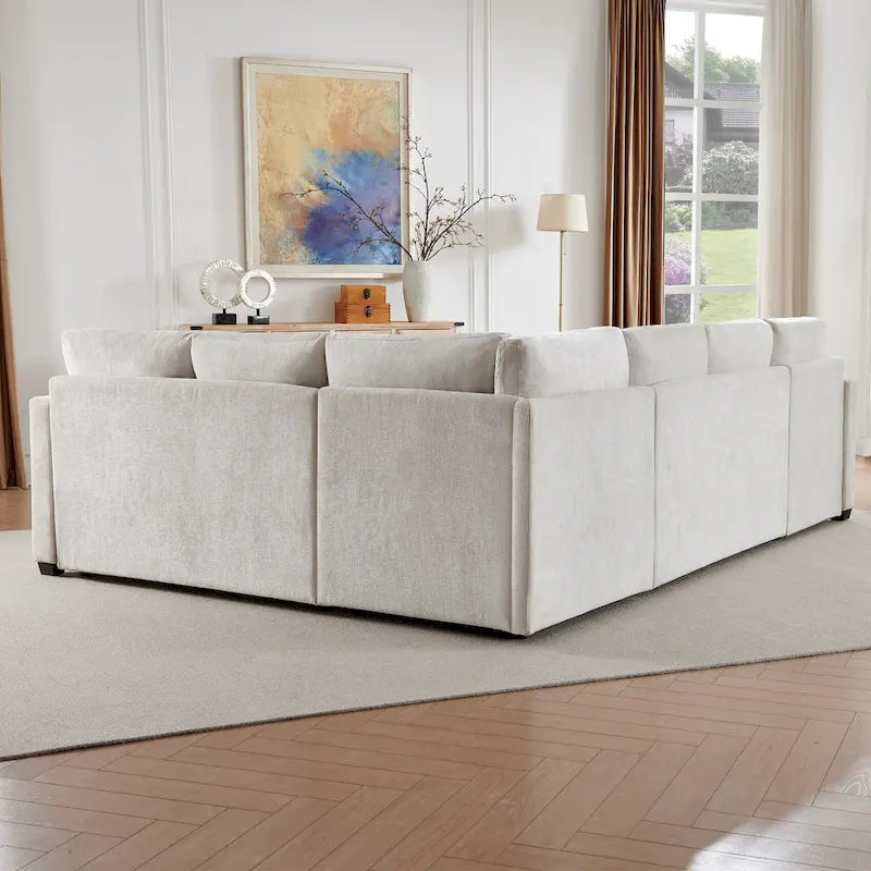105.5 U-Shaped 5-Seater Sleeper Sofa with Pull-Out Bed and Storage Ottoman