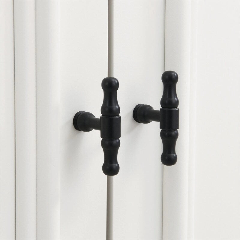 Elegant Retro Charm: Featuring petite, charming black retro handles paired with gracefully painted door panels, this TV cabinet exudes elegance and style. Additionally, its exquisitely designed top curvature adds a touch of refined craftsmanship, enhancing this cabinets overall allure.