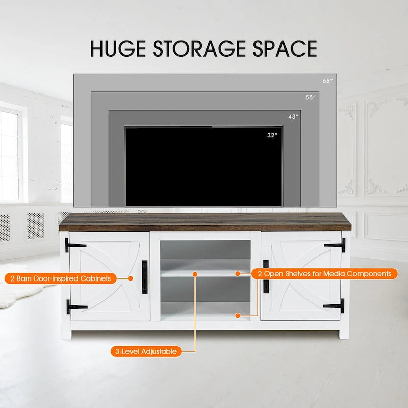 58 Farmhouse Barn Door Entryway Storage Console Table TV Stand - 58 inches in width