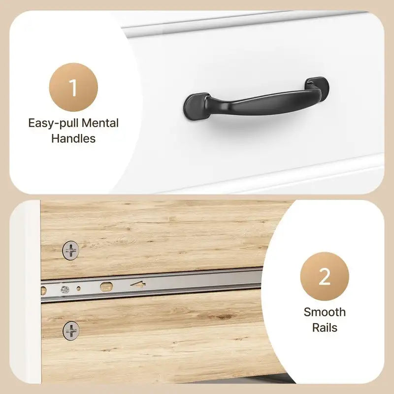 - Excellent use feeling: This chest of drawers is equipped with easy-to-grip black metal handles and smooth drawer slides, bringing an excellent use experience. The chest of drawers is made of unpainted board with a smooth surface, moisture-proof and wear-resistant. Don't worry about stains on the surface, just wipe it with a cloth dampened with water, it will make the chest of drawers look brand new.