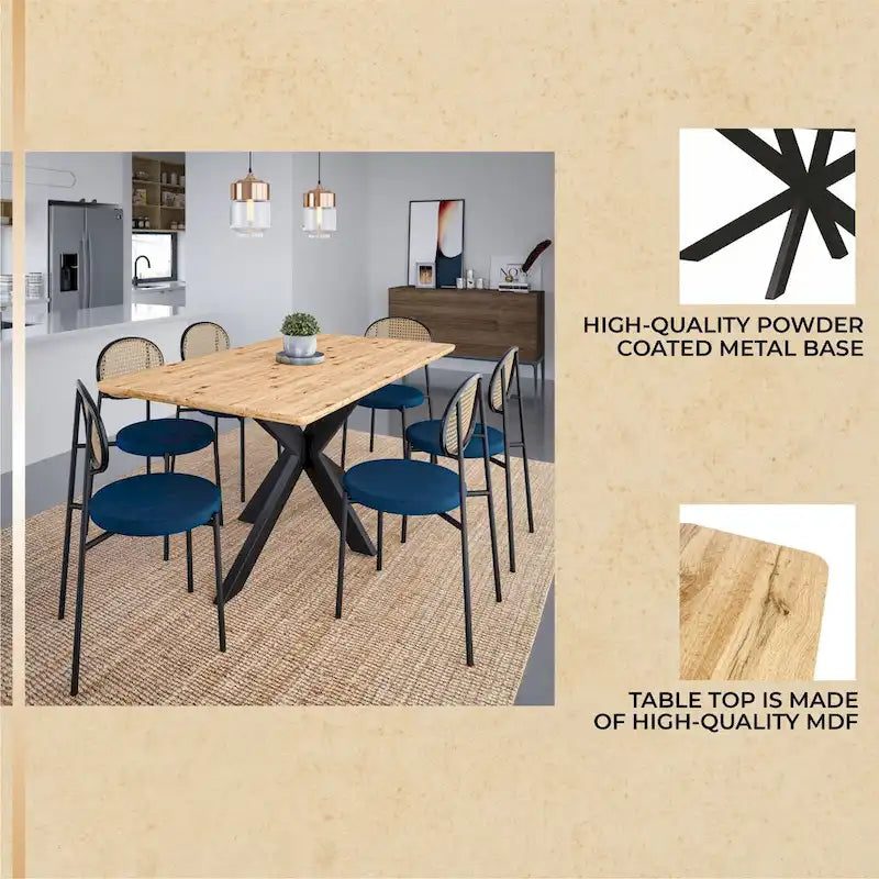 63 Rectangular Dining Table with MDF Tabletop & X-Cross Geometric Metal Base for Home Kitchen Dining Room