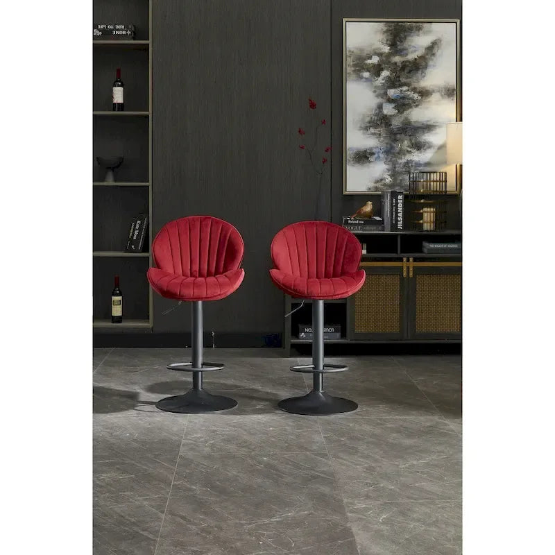 Adjustable Swivel Bar Stools Set of 2, Counter Height Bar Chairs with Back, Velvet Armless Dining Chair with Footrest