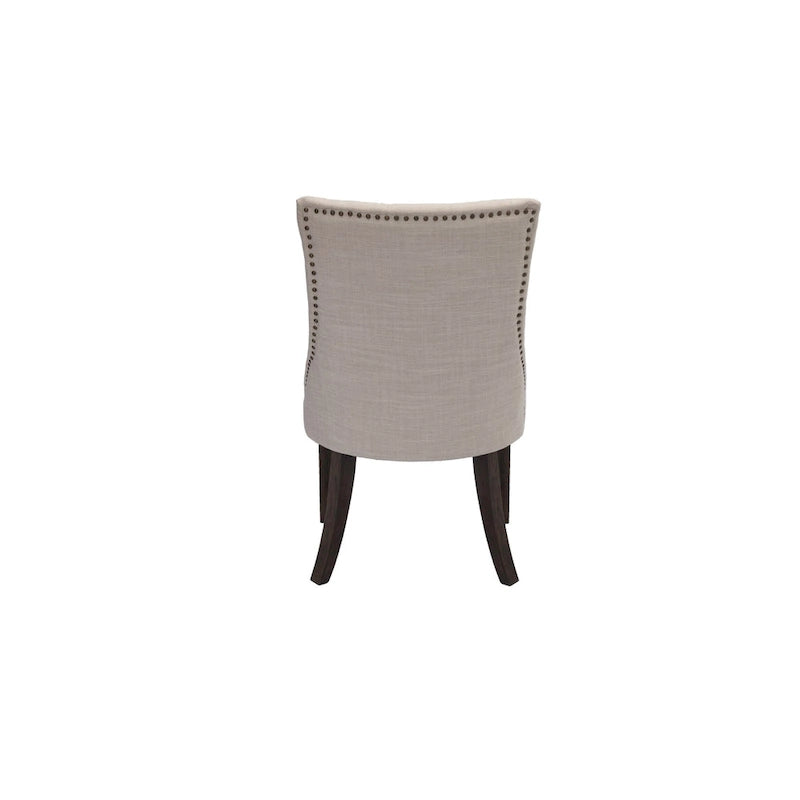 - Luxurious beige or grey linen upholstered chairs with nailheads