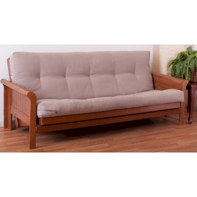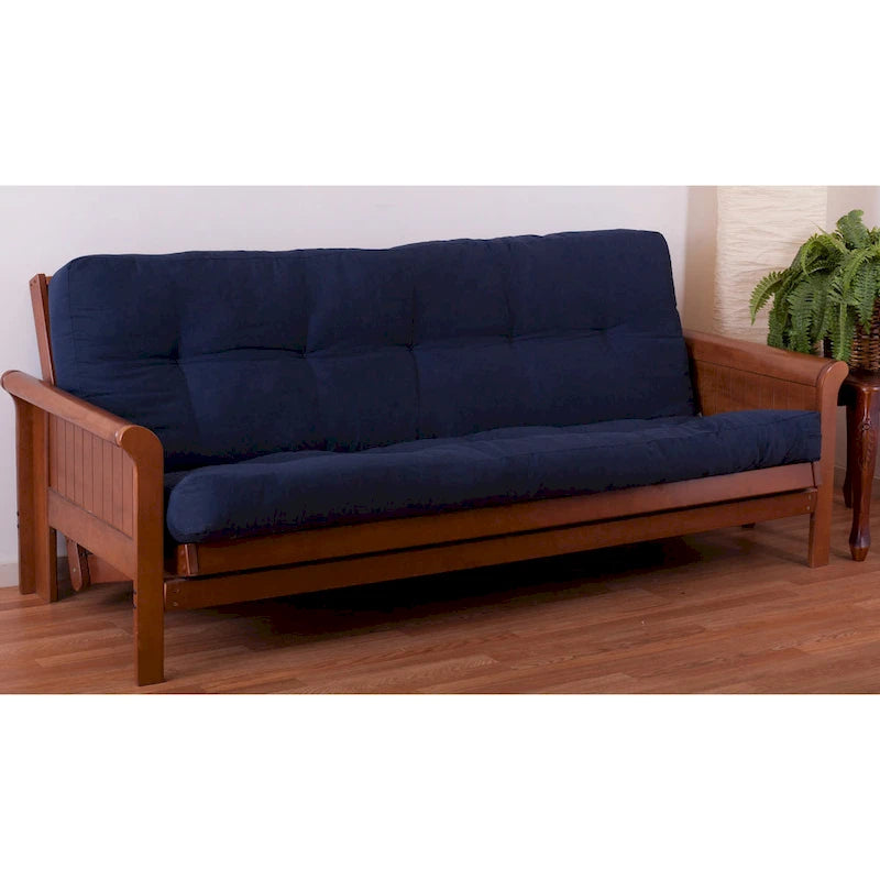 The Renewal queen-size 6-inch thick futon mattress sets a newstandard in quality and affordability. Filled with cotton and twolayers of 1.5 inch thick foam, this futon is covered with qualitytwill fabric. Be prepared for movie night and visiting in-laws withthis stylish futon. This futon is big enough to sleep two and seatmore, and the cotton upholstery is durable, comfortable andbreathable. There are a variety of color options to choose from,including black, burgundy, chocolate, toffee, navy blue, forestgreen, sage green and natural. The frame and pillows are soldseparately.
