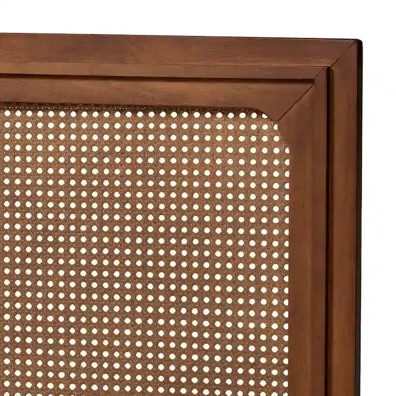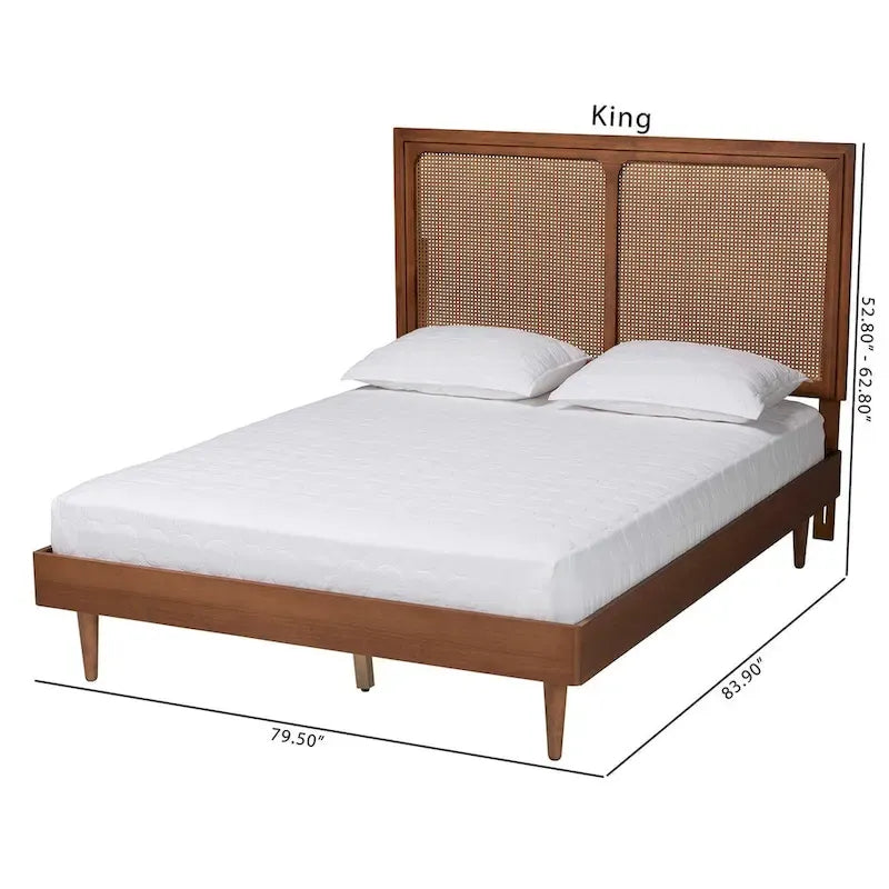 Develop a robust yet soothing aura in your space with the lovely Boris platform bed. Made in Malaysia, this mid-century piece consists of a sturdy wood frame embellished with a woven rattan headboard. The rich texture of the paneled headboard, coupled with the clean lines of the frame, create a captivating showcase of exquisite craftsmanship. The Boris requires assembly and utilizes wood slats for mattress support, eliminating the need for a box spring. Emitting classic artistry, the Boris platform bed is a remarkable bedroom centerpiece.