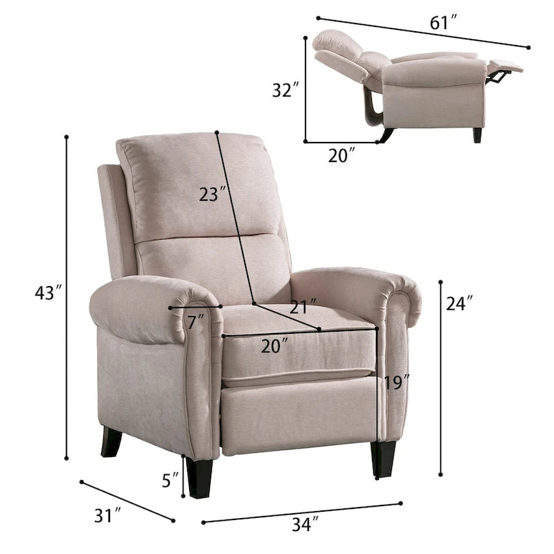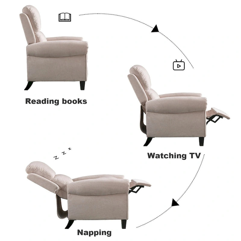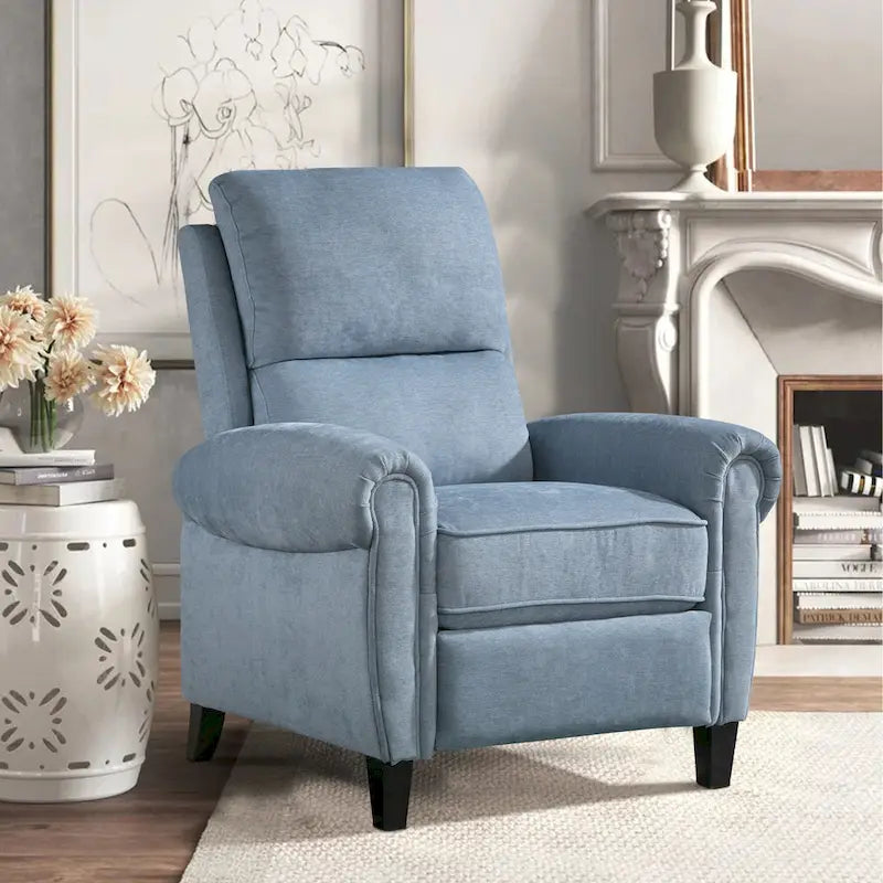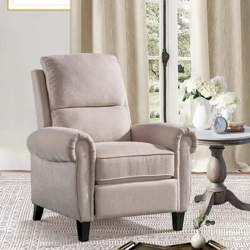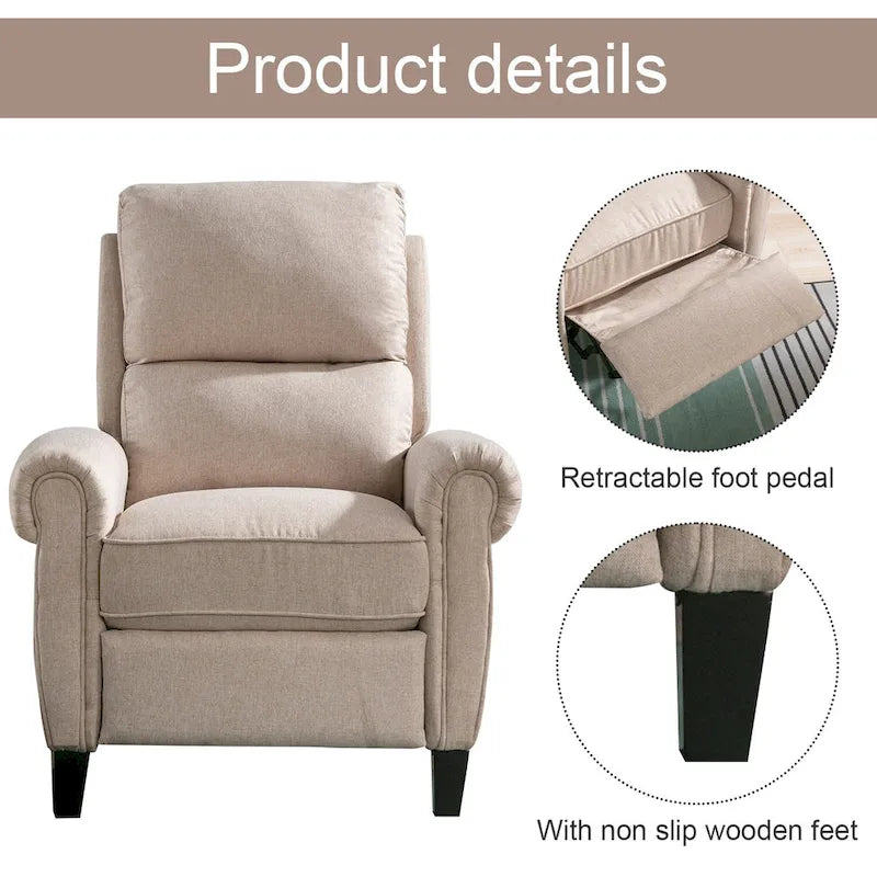 Chenille Upholstered Push Back Recliner with Solid Footrest