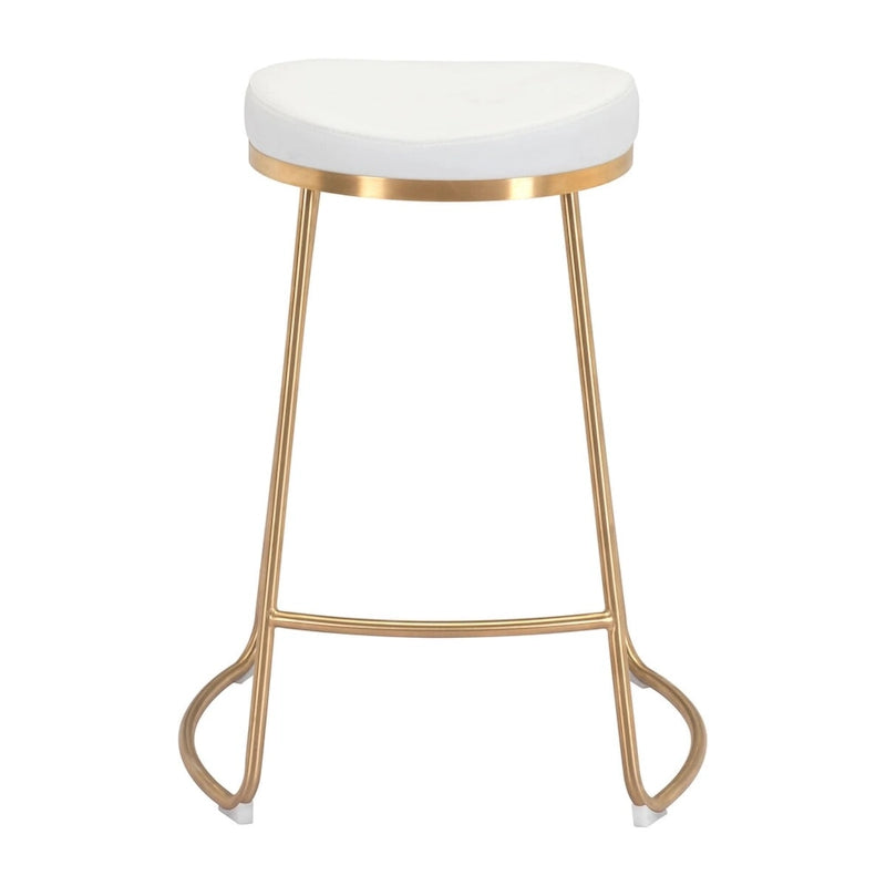 Add glamour to your bar or kitchen area with this simple and sophisticated counter stool. Lux gold legs in solid Stainless Steel bend subtly to support a simple round faux leather seat in black. Its fluid modern design will compliment in any decor. Wonderfully comfortable with a generous padded cushion and footrest. Protective plastic feet keep your floors scratch-free.