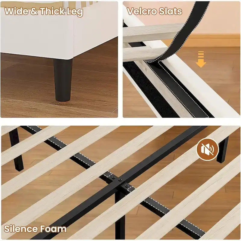 - Stable & Noise-free Platform Bed: The adjustable upholstered headboard platform bed frame made of sturdy steel frame with solid wooden slats and no-slip pad of bed legs ensuring durability and stability. Easily loading 800 lbs. No-nosie design give you quiet sleeping environment.