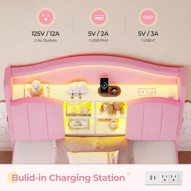 Chic Upholstered Bed Frame for Girls with LED Lights