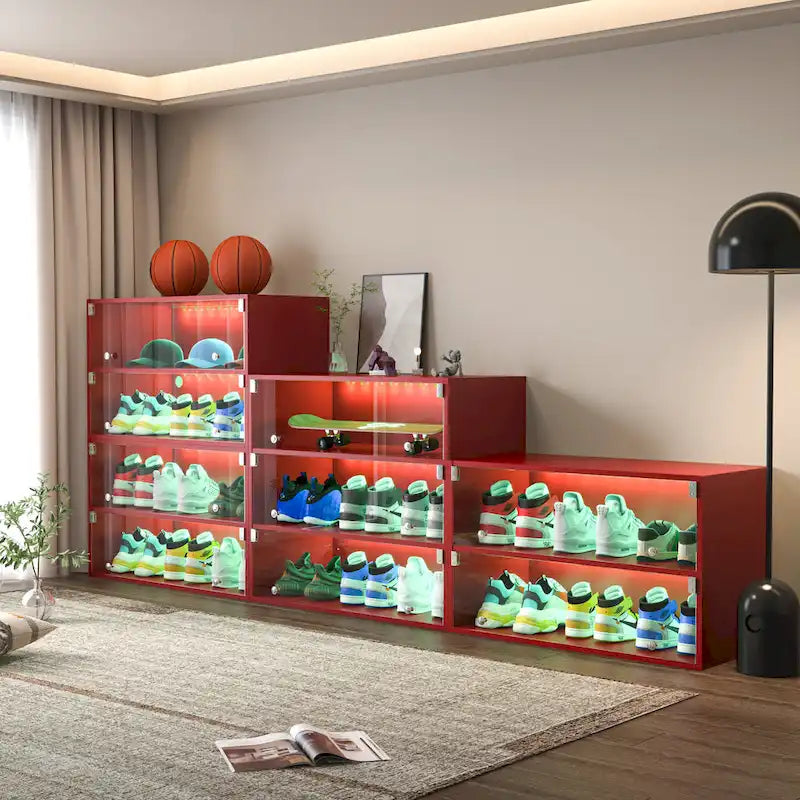 Glass Door Shoe Box Shoe Storage Cabinet For Sneakers With RGB Led Light