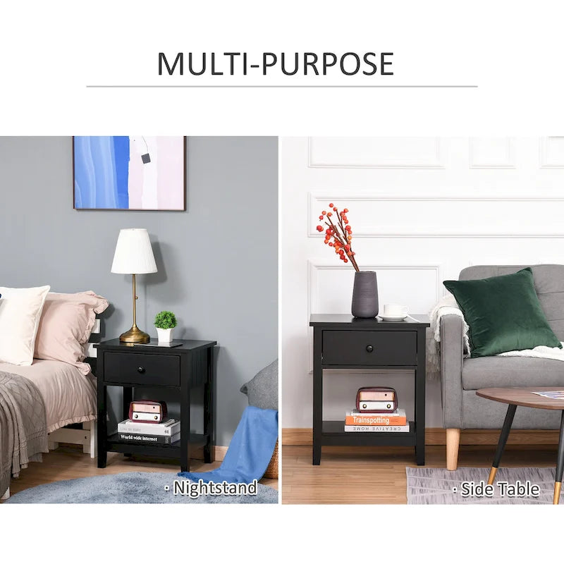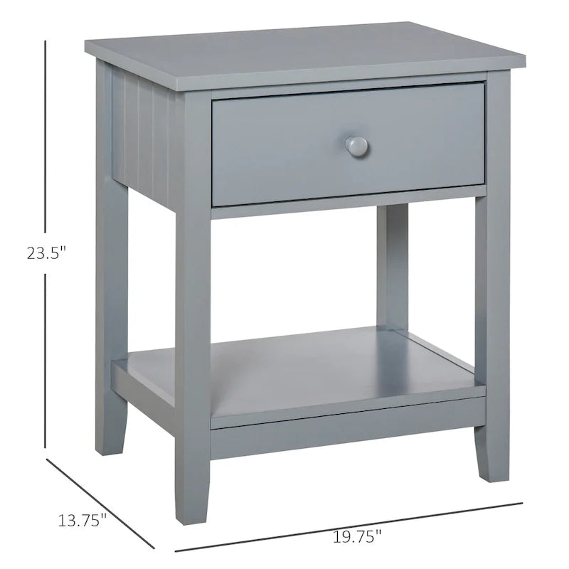 HOMCOM Modern Style Bedside End Table with Drawer and Storage Shelf for Bedroom, or Living Room - 19.75x13.75x23.5