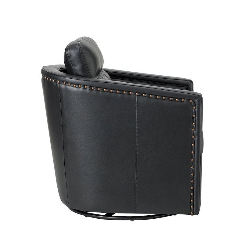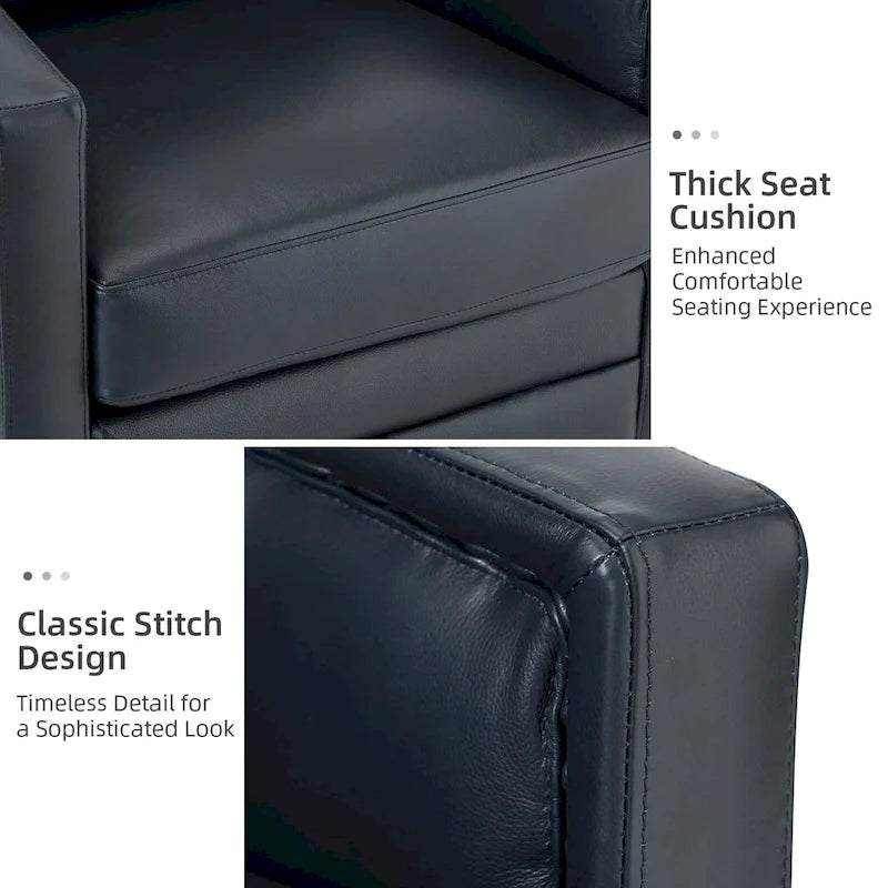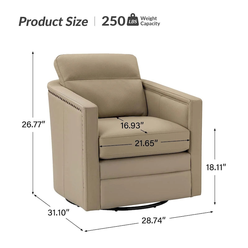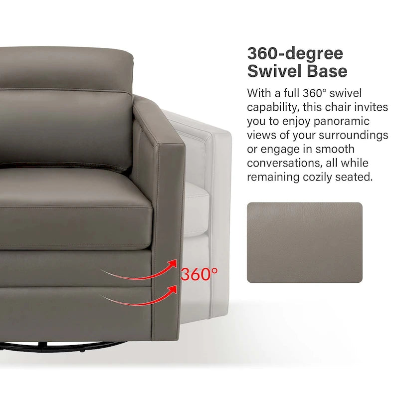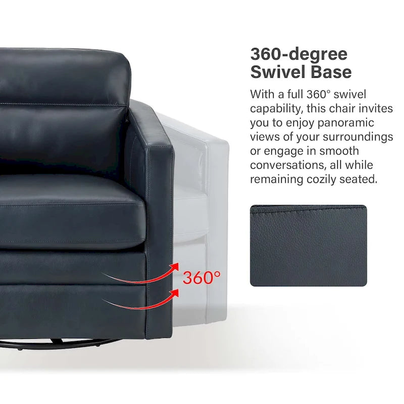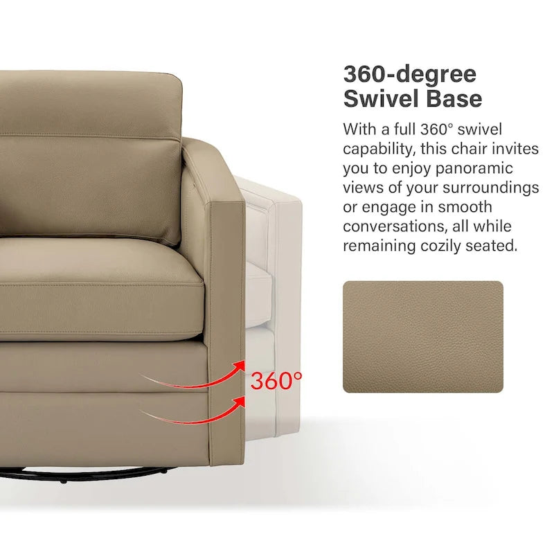 Create a cozy and stylish retreat in even the smallest of spaces with this set of two genuine leather swivel chairs. These chairs have a compact footprint and feature a solid wood frame, firm backrest, and elastic seat cushion for extra legroom to support your sitting position. The spring seat structure and foam filling provide just the right amount of support, while the rebound swivel mechanism allows for easy and stable swiveling. Perfect for a reading nook, study, or office.