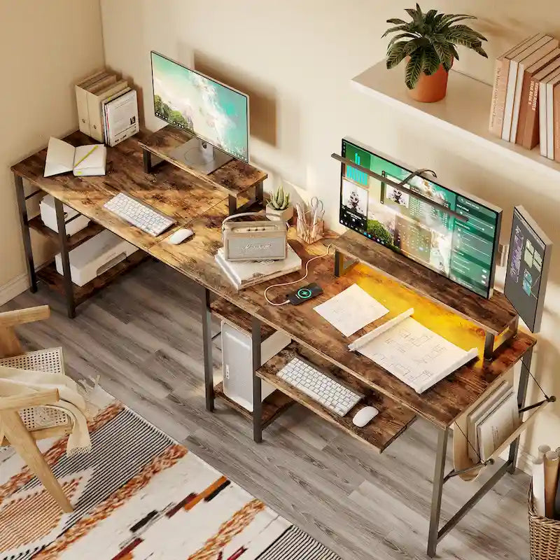 L Shaped Desk LED 95.2 Inch Computer Corner Desk with Keyboard Tray Monitor Stand