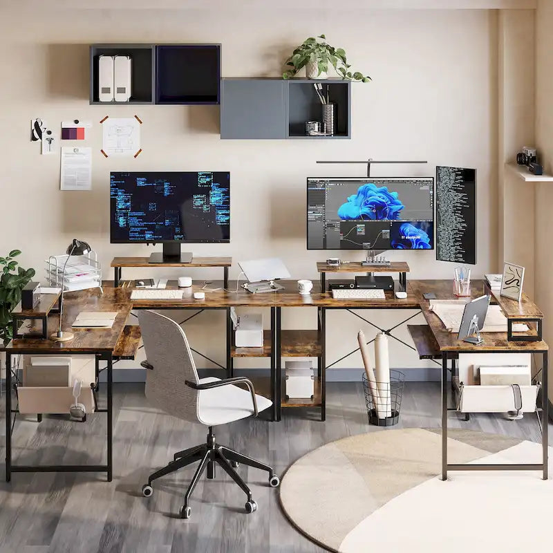 - Choose between a 59.5 inch L-shaped desk or a 95.2 inch double long desk configuration