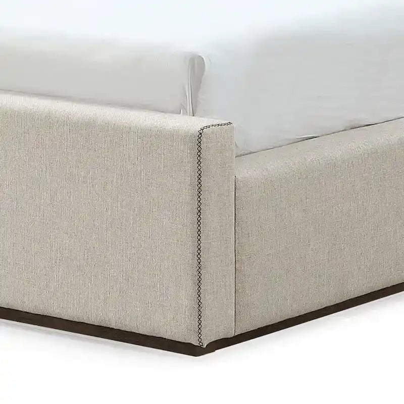 Low-slung and modern, the Louis bed pairs bold proportions with subtle design cues to make a statement in any bedroom. A contrasting cross stitch adds pattern and angularity to the soft, inviting lines of a deep sleigh-style headboard and generously proportioned bed frame. Designed for use without a box spring, a European-style bentwood mattress support is included. The matching storage ottoman adds seating at the foot of the bed or elsewhere in the home.