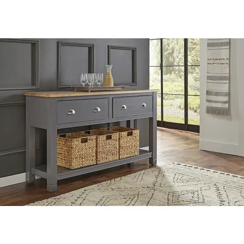 The Luma Solid Wood Dining Set is constructed of solid New Zealand Pine and does not contain MDF or Particle Board. New Zealand Pine is prized in furniture construction because of its superior density and lack of knots. The 92 leg table includes an 20 butterfly leaf and accommodates up to 8 guests. The slatback dining and arm chairs are generously upholstered and feature Pirelli webbing for improved durability. The versatile sideboard completes the set by offering ample for storage and display with its oversized drawers and full-length bottom shelf.Note: *Wine Storage Cabinet not included in this grouping, but is available as a seperate sku.** Baskets photographed with Sideboard are photography props and not included with set.Finish: 7- step Two-tone Gull Grey and Seaside Pine finish10-piece set includes: One (1) table, Six (6) Side Chairs, Two (2) Arm Chairs, One (1) Sideboard