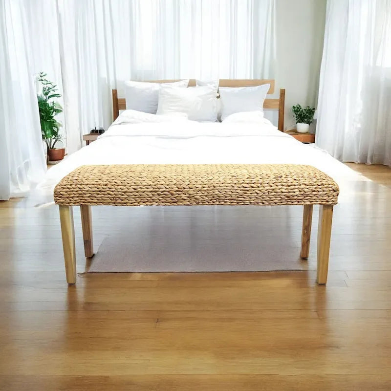 M4H Chania Solid Wood Natural Water Hyacinth Indoor Bench