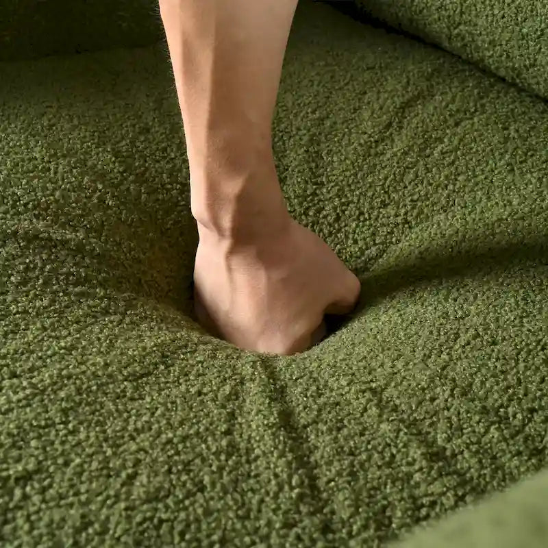 LUXURIOUS DESIGN & ARTISTIC FLAIR: Crafted with sumptuous upholstery, this single sofa blends modern elegance with vintage charm. The soft teddy velvet surface features a unique luster and texture, complemented by curved armrests and walnut legs for an artistic statement piece.