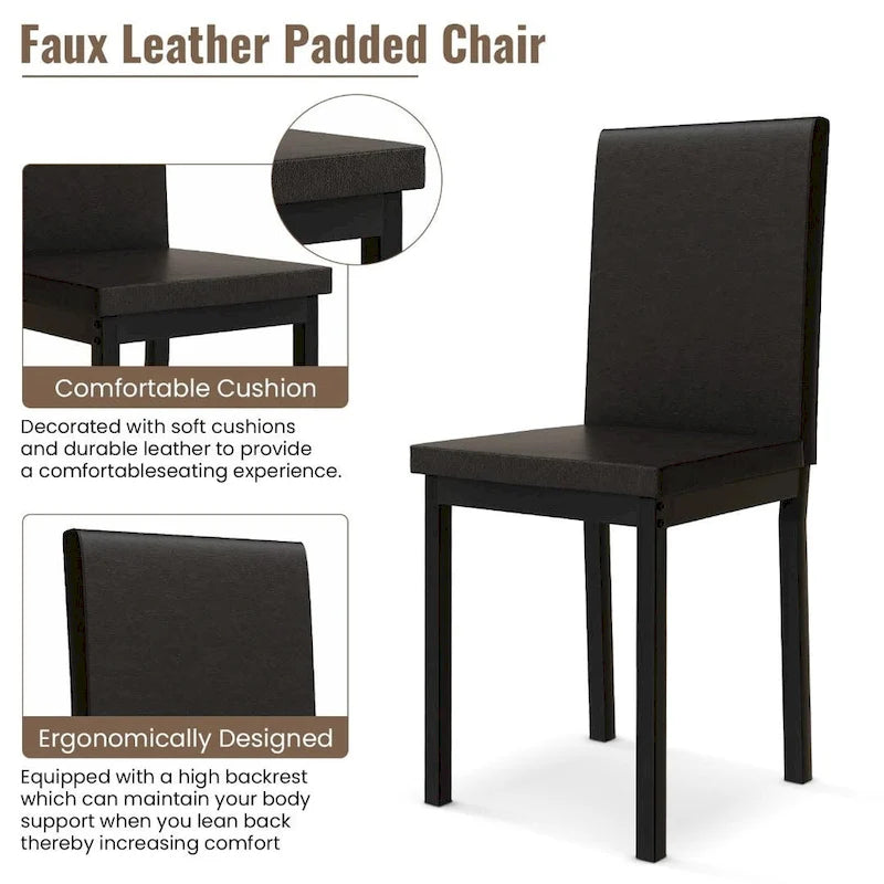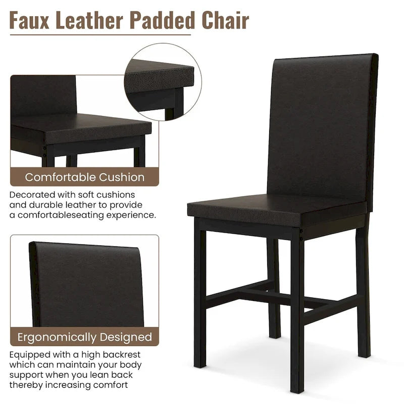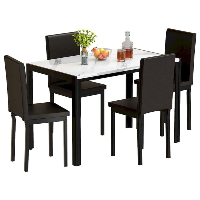 Mieres 5-Piece Dining Table Set with Faux Marble Top and 4 PU Leather Upholstery Chairs for Kitchen Dining Room