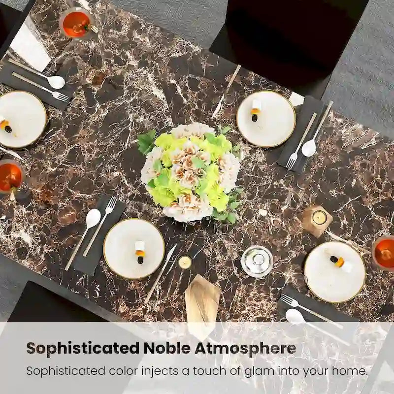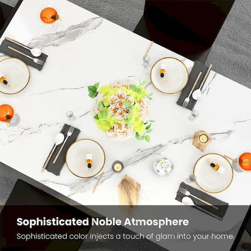 - Modern Marble-Style Table Set seats up to 4 people with a rectangular table for family dinners or meals with friends.