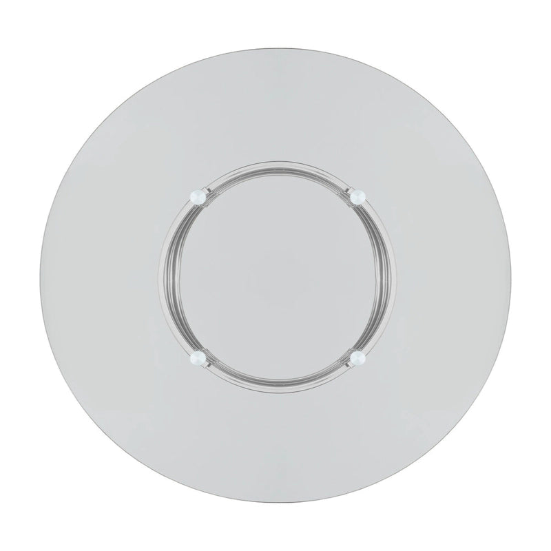 - Round, clear tempered glass table top