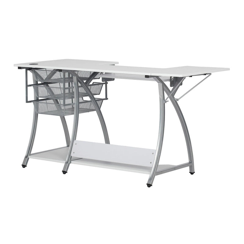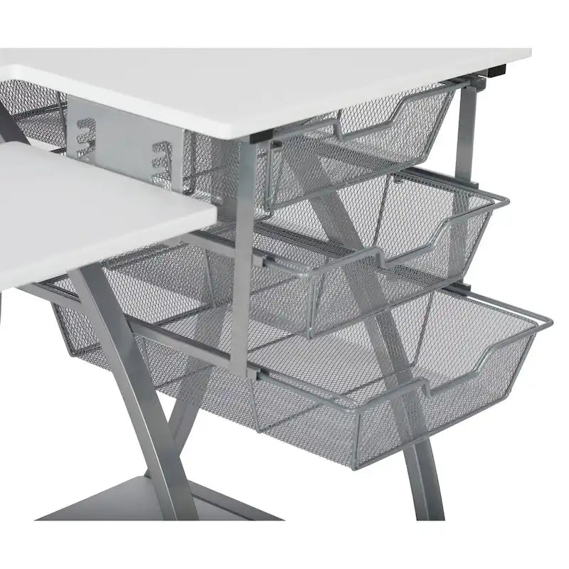 Organize your sewing projects with ease using the Sew Ready Pro Stitch Sewing and Craft Table with Storage. Available in two colors, this multi-functional table doubles as a computer desk and is equipped with built-in shelves and wire mesh drawers, providing ample storage space for all your sewing supplies. The height-adjustable sewing machine platform and wire management hole ensure your comfort and convenience while you work.