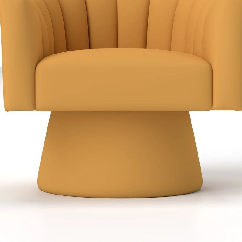 The Velvet Upholstered Swivel Chair is the perfect combination of comfort, style and sturdiness. Handcrafted by skilled furniture artisans, it is upholstered in soft, gorgeous velvet and is available in a variety of colors to suit your interior decor. The chair has a swivel mechanism that makes it easy to turn and maneuver. The silk mesh seat suspension system provides maximum support. With overall dimensions of 27.17D*28.15W*30.51H, this eye-catching chair will add a pop of style to any space.