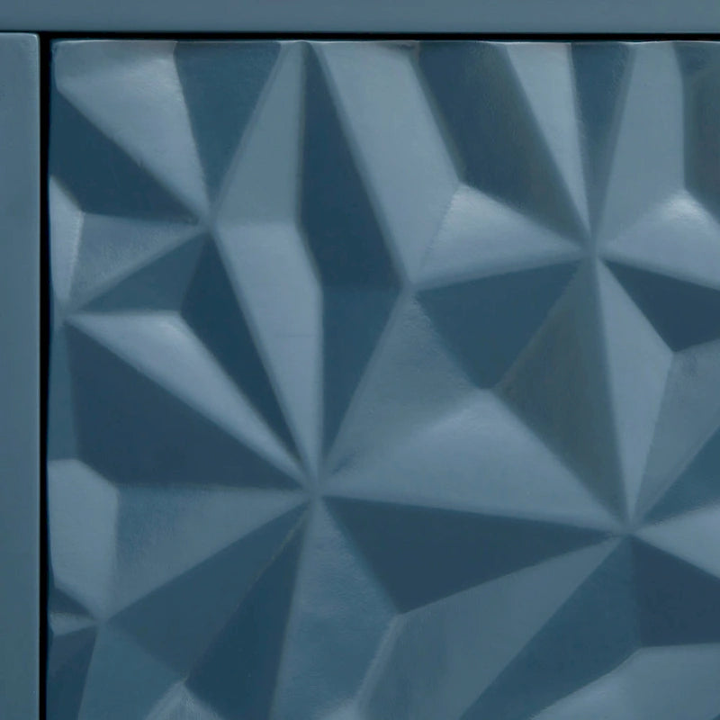 - Contemporary design with dimensional geometric accent on drawer fronts