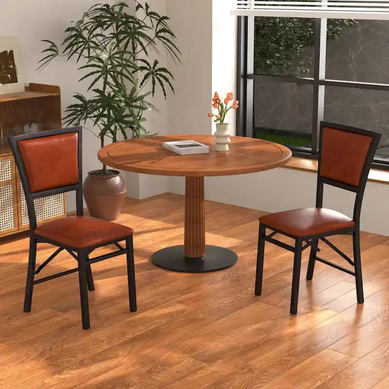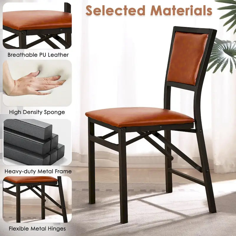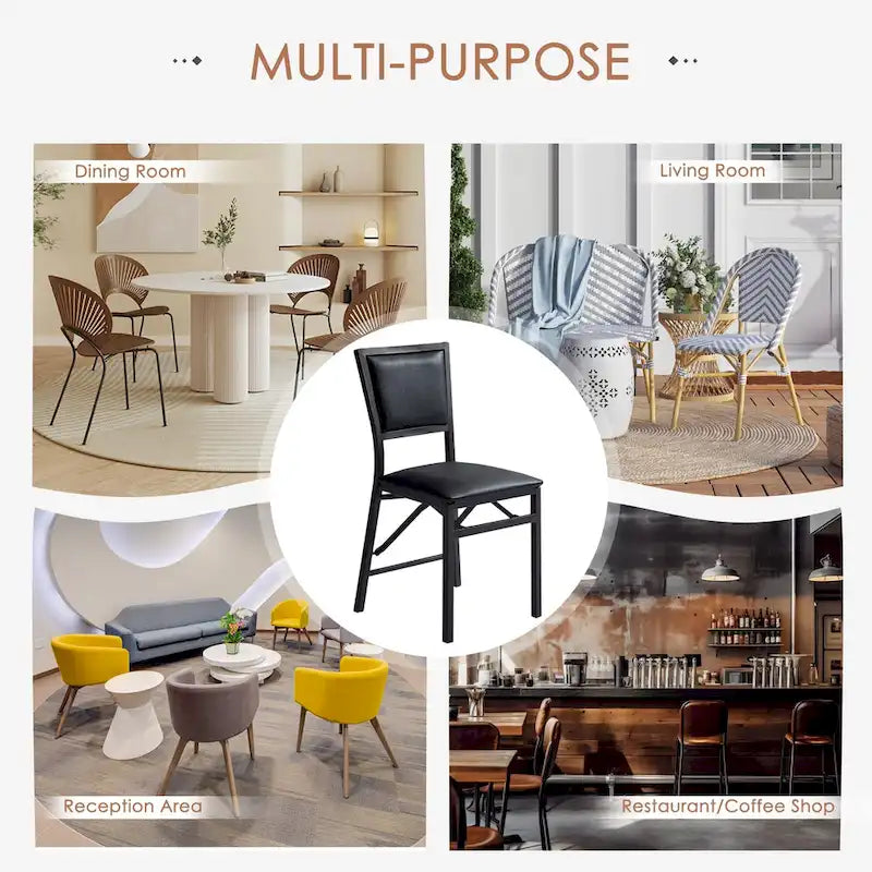 Strong StructureThe kitchen chairs have solid metal frames for proper support and stability; metal legs have great durability and ensure a long service life. Our folding dining chair can be opened and folded in seconds, making it perfect for small spaces.