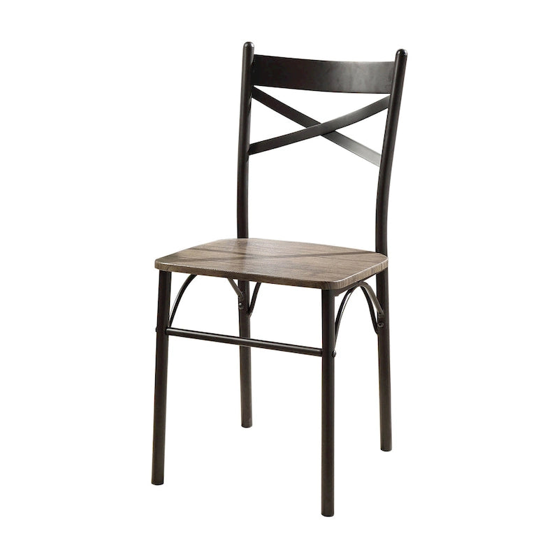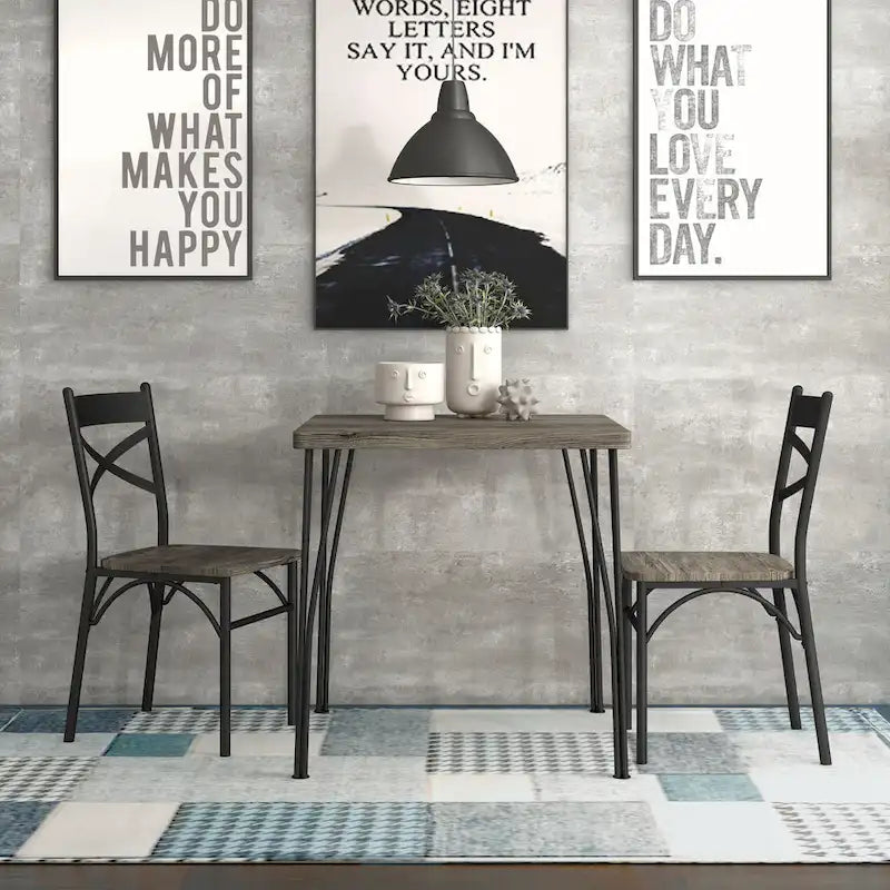 Elevate your dining experience with this compact 3-piece set from Furniture of America. The industrial design features a striking metal frame with a dark bronze finish, complemented by a rustic veneer tabletop and seats. Perfect for small spaces, the set includes 1 square table and 2 matching chairs with a modern crisscross back. With your choice of natural, antique brown or natural tone, this set is both stylish and functional. Assembly is a breeze with all tools provided.